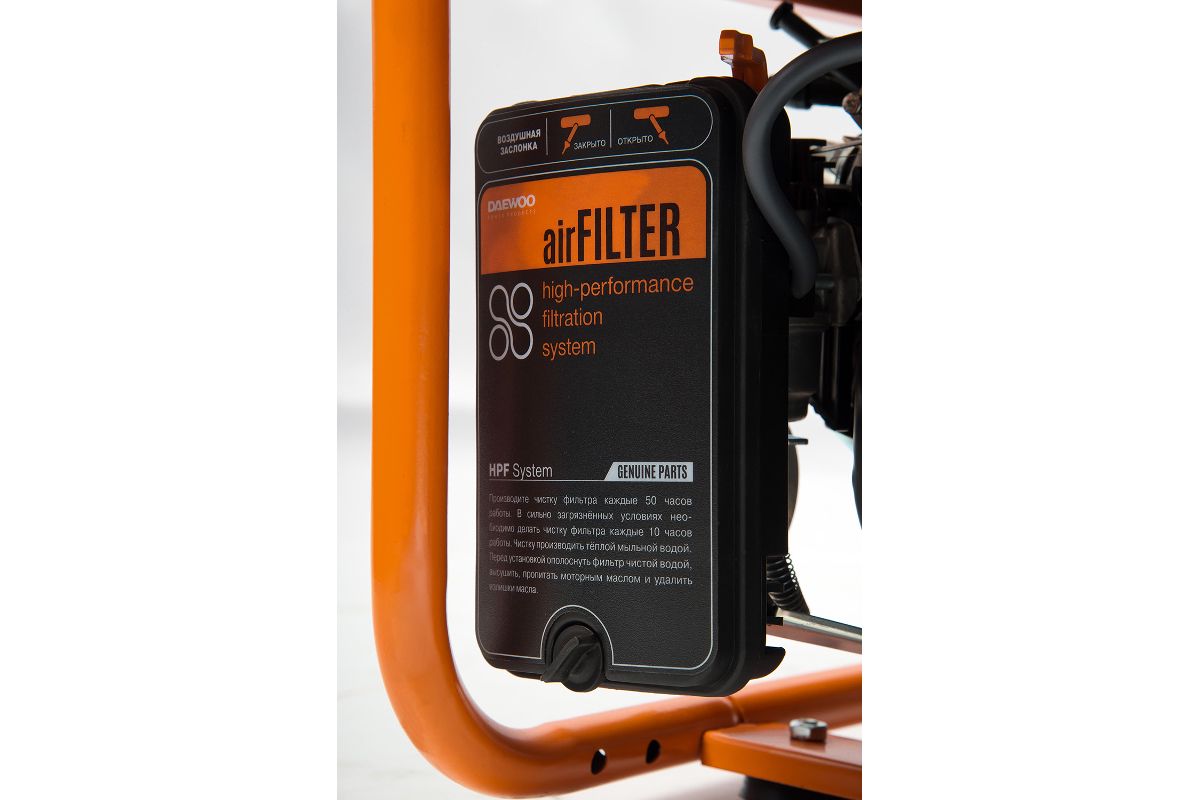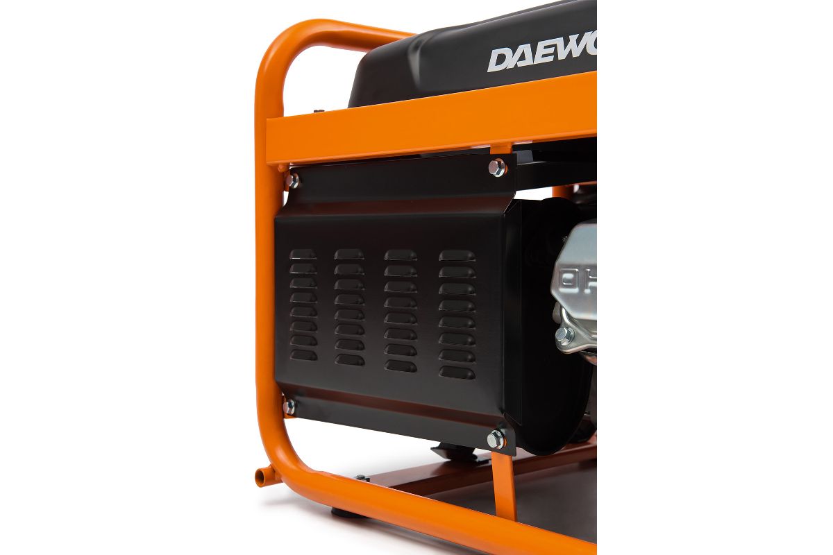 Оснащен вольтметром, с помощью которого пользователь может обезопасить подключаемых потребителей от перепада входного напряжения, а также контролировать параметры и качество выходного электрического тока. Корпус агрегата представляет из себя жесткую рамную конструкцию, изготовленную из высокопрочной стальной трубы диаметром 32 мм, со специальным экраном, защищающим двигатель от ударов и попадания инородных предметов. С помощью двух рукояток, образованных из рамы генератора, его удобно поднимать и переносить с одного рабочего места на другое. Электростанция устанавливается в хорошо проветриваемом помещении, либо на открытом воздухе - для защиты оператора от паров бензина.