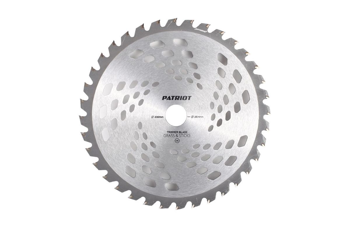 Пильный диск для триммера с твердосплавными зубцами, D=230*25,4 мм, 36 твердосплавных зубьев. Упаковка в термоусадочной пленке на картонной подложке.