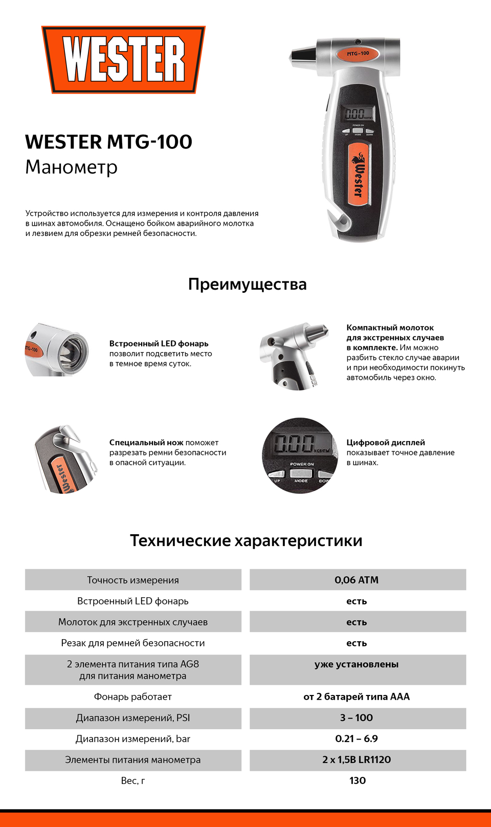 Манометр цифровой WESTER MTG-100 многофункциональный