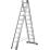 Универсальная трехсекционная лестница со стабилизатором используется для сбора урожая, для ремонта фасада здания, в быту. В зависимости от положения частей представляет собой стремянку, стремянку с выдвижной секцией или приставную лестницу.