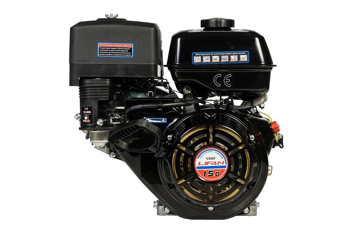 Бензиновый двигатель Lifan 190F 7A - профессиональный двигатель для установки, в основном, на мотобуксировщики и тяжелые мотоблоки. Наличие катушки в 7А позволяет подключить электрооборудование до 132Вт. Работает на бензине АИ-92, что расширяет возможнос